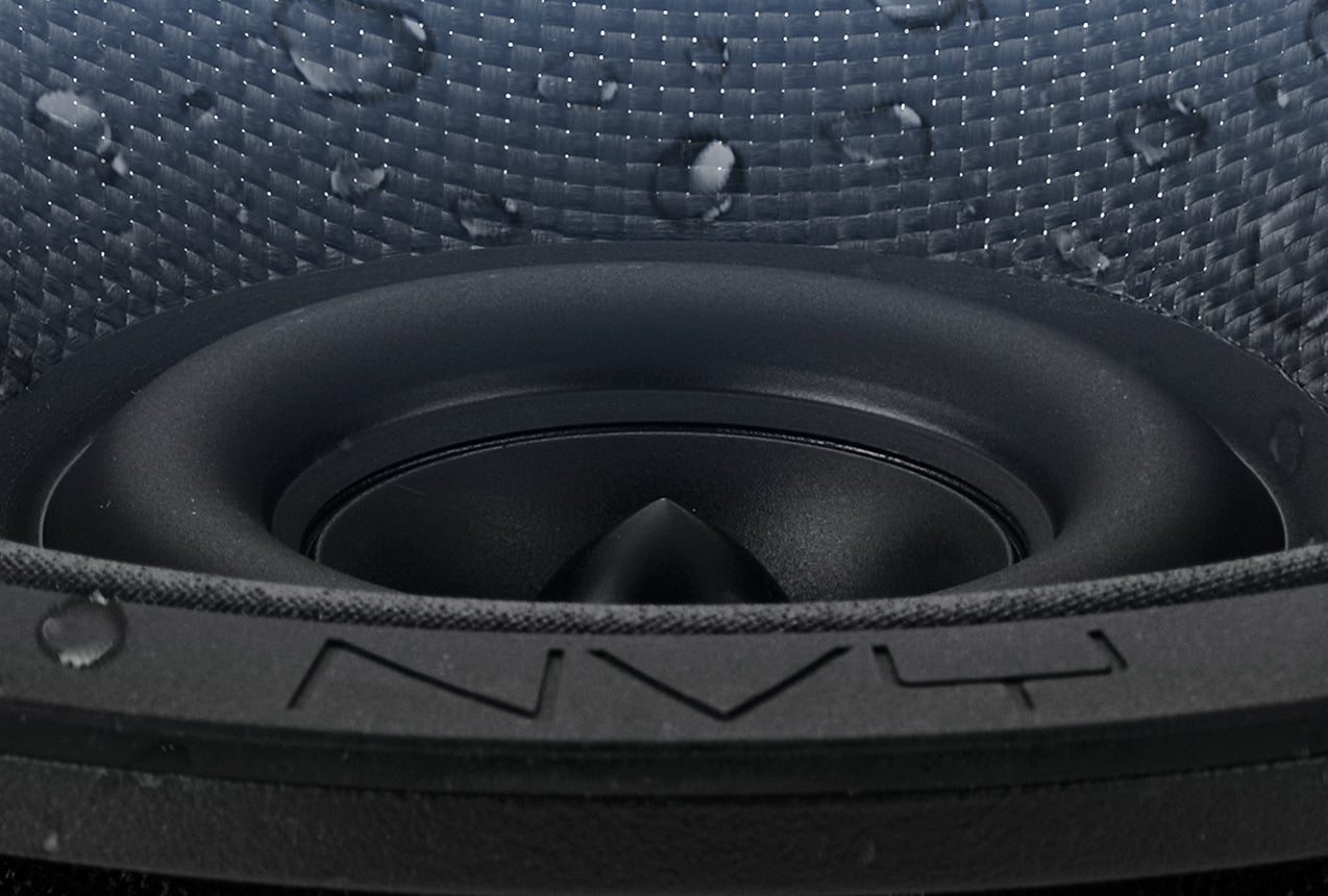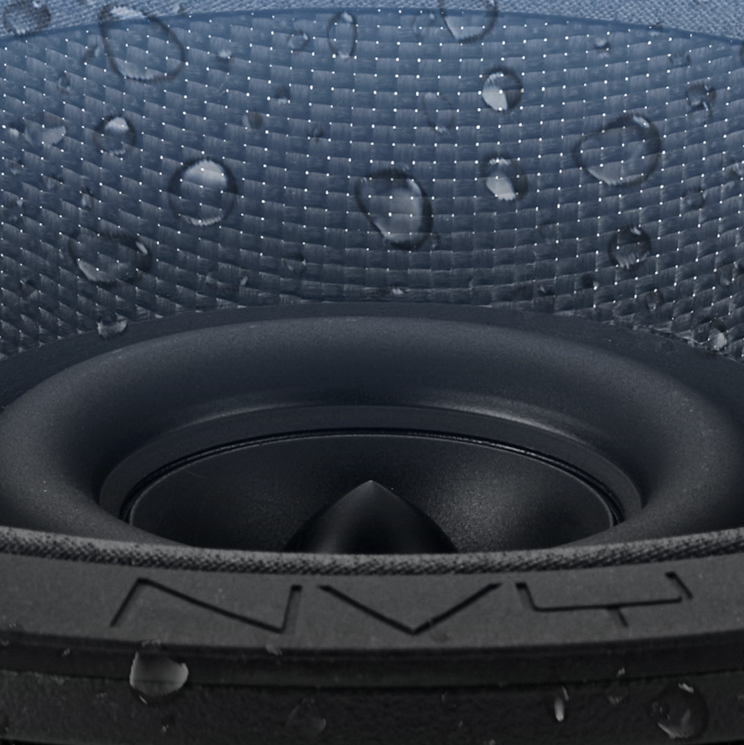 A Kevlar-reinforced woofer cone offers the perfect mix of rigidity and responsiveness for higher SPL, louder output, and deeper tones than standard paper cones. Wrapped in a marine-grade aluminum basket, the entire assembly is IP65-rated waterproof and UV resistant for long-haul durability.