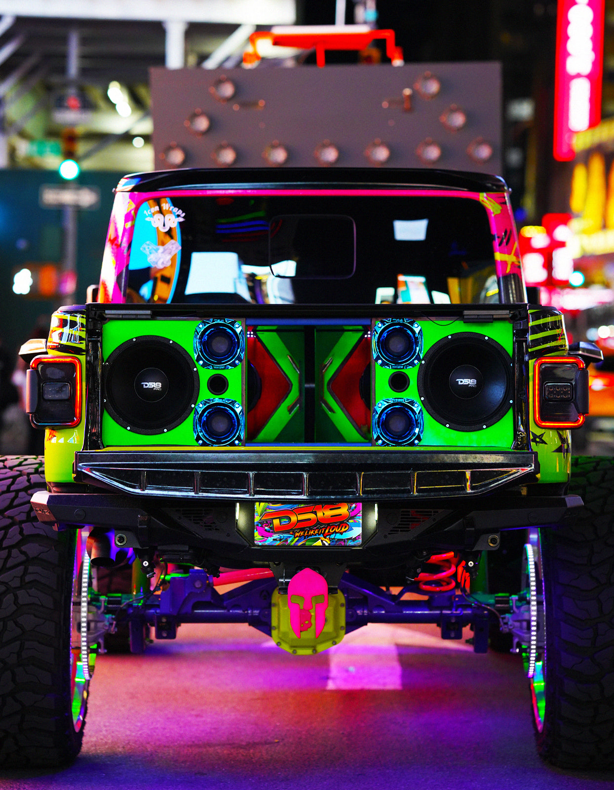 DS18's JBASS is perfect for Jeepers who crave EXTREME BASS Without Compromising On Space. Specifically designed to fit the back of all TJ, JK, or JL Jeeps, this ported enclosure fits two DS18 shallow mount subwoofers.