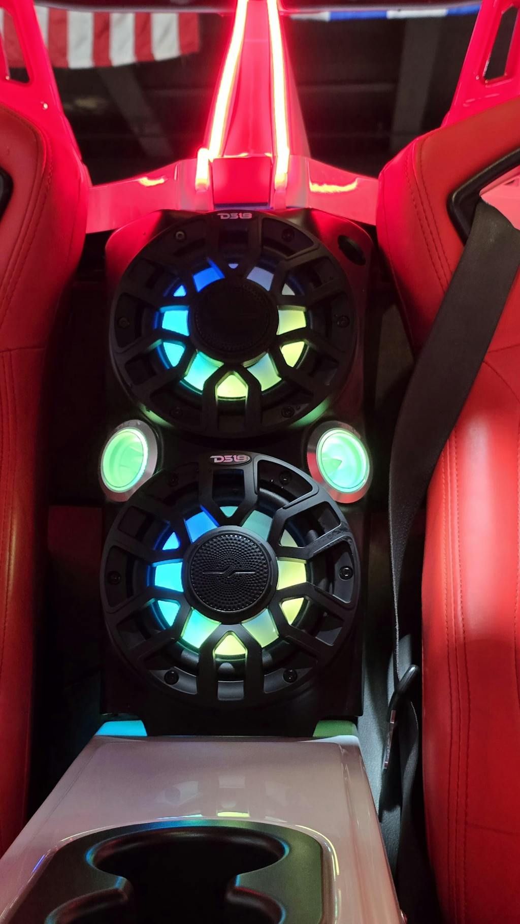 DS18 SLG-WFCC66LD LOADED Polaris Slingshot Waterfall Center Console Speaker Pod with LED Lighting