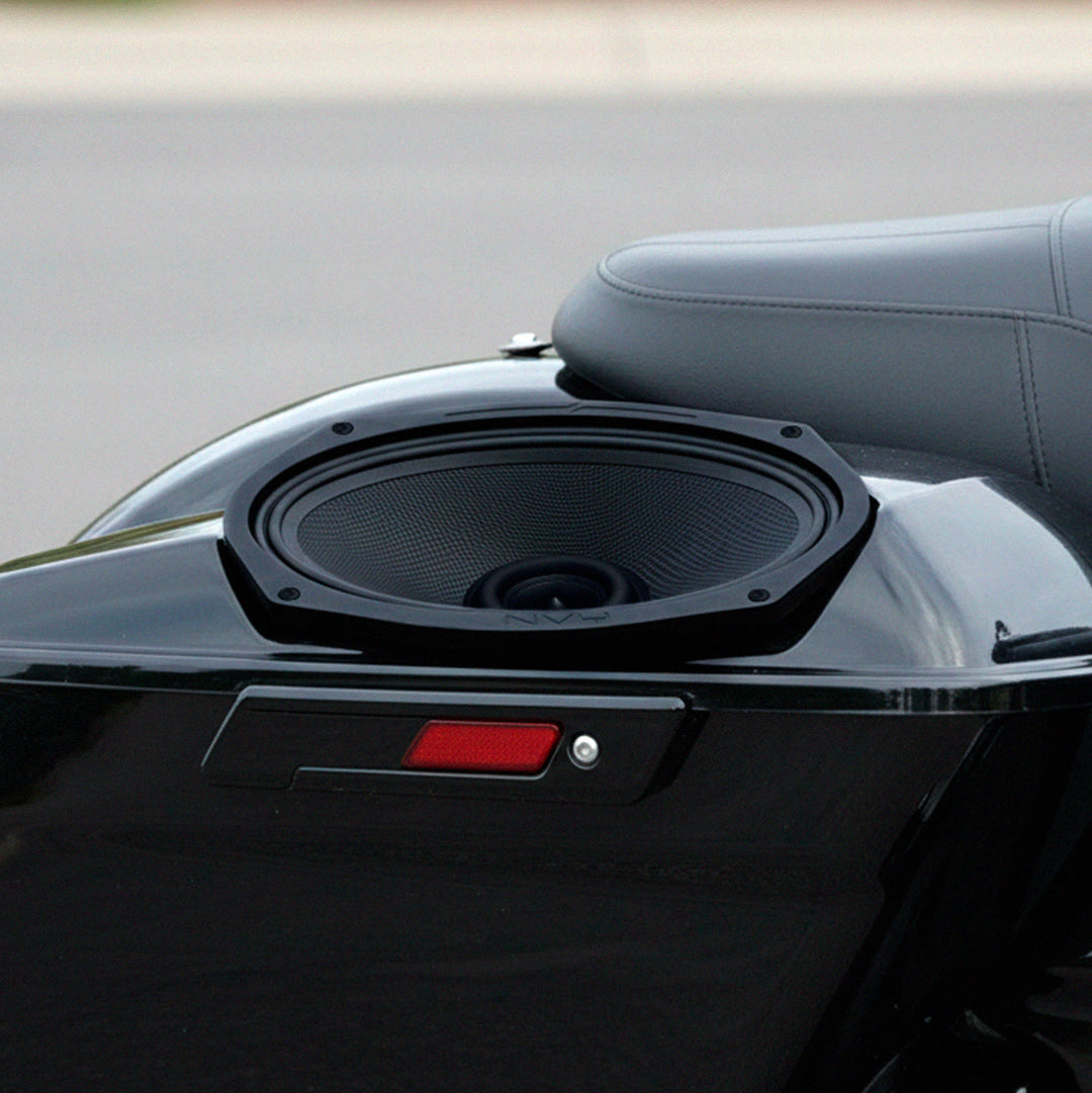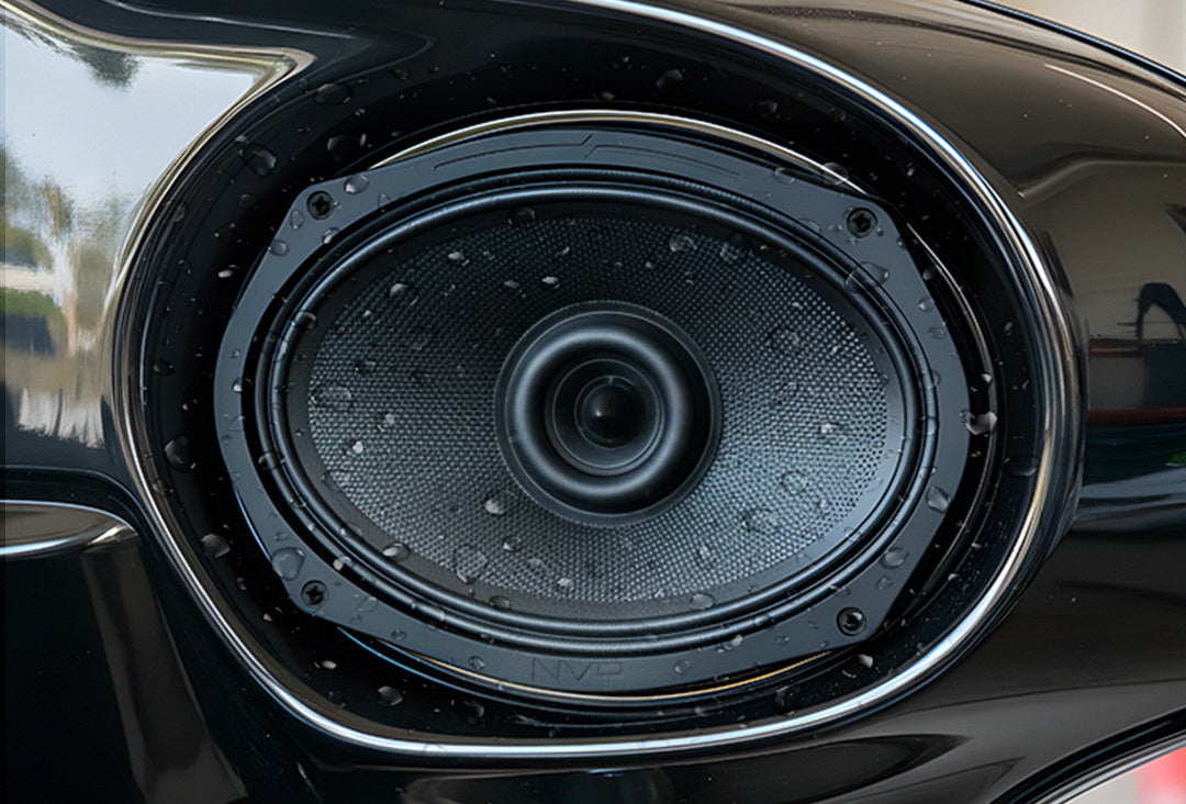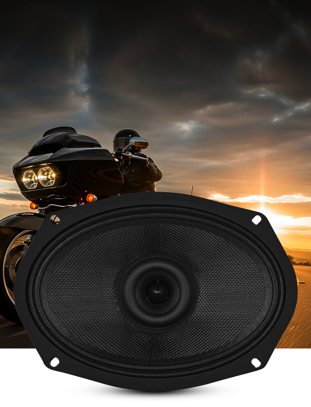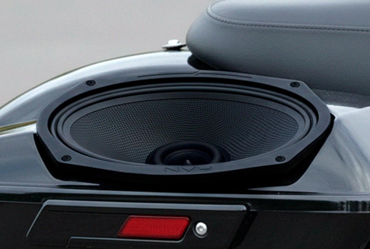 With standard 6x9” sizing and a shallow 3.5” mounting depth, this speaker fits cleanly into saddlebag lids and rear pods. Dual push terminals simplify install and make tuning your system easier than ever.