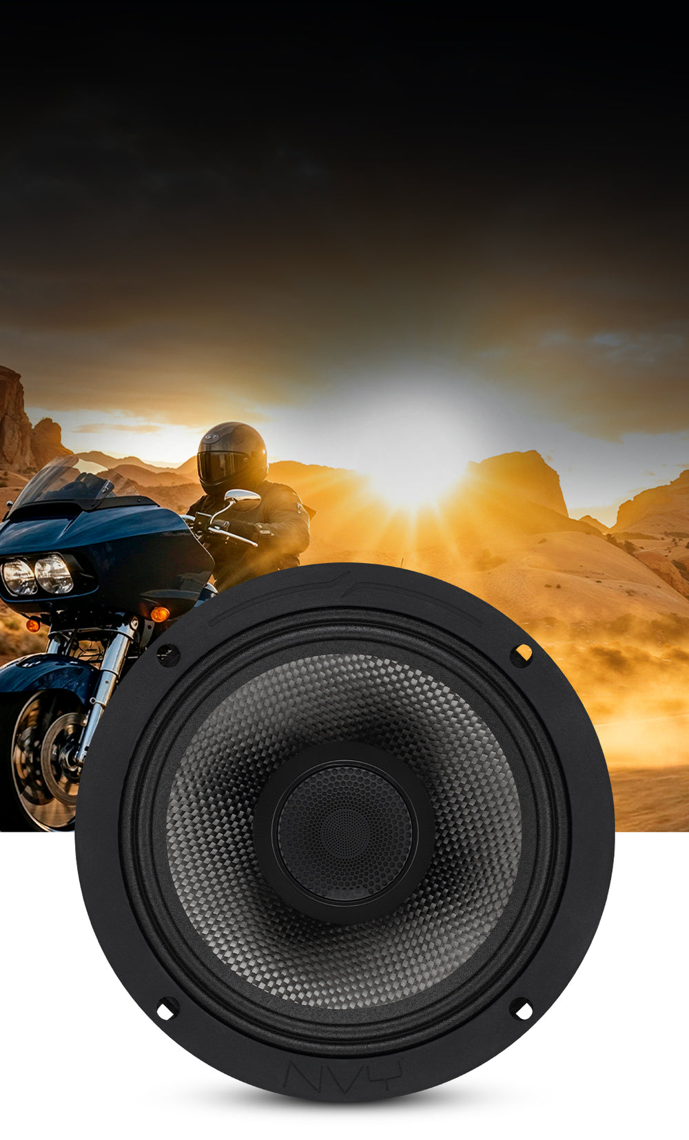 Weatherproof by design, the NVY-6CFZT-N4 holds an IP65 rating for reliable performance in harsh conditions. Its sealed cloth surround and corrosion-resistant aluminum basket make it ideal for motorcycles, powersports, and marine installations.