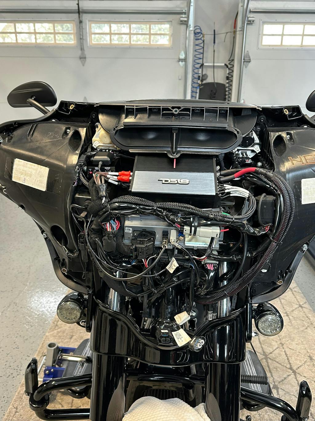 Very easy and clean install with the ds18 plugnplay harness, no cutting or splicing needed.. Fits perfectly in the fairing.